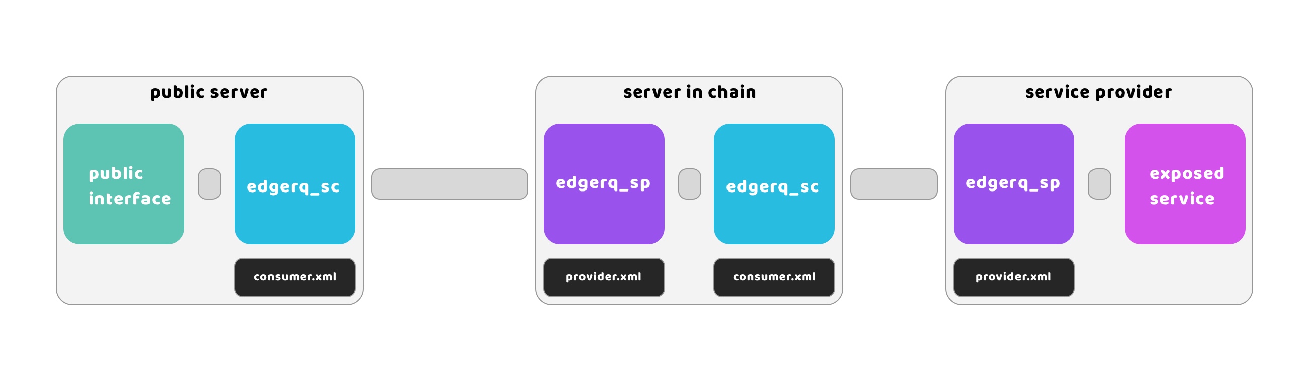 It is possible to chain-link an edgerq_sp feeding requests to another edgerq_sc on the same machine effectively making it possible for requests to jump through multiple machines to get to their destination. To achieve this you would configure another edgerq_sc instance on the same machine as you are running edgerq_sp instead of running web servers on that machine. You would then connect to this edgerq_sp instance from another machine running edgerq_sc. You can chain-link SC and SP instances like this indefinitely taking into account that this increases the time it takes for requests to reach their destination.